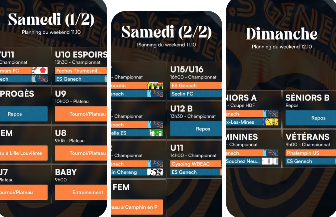 ⚽ 𝓟𝓵𝓪𝓷𝓷𝓲𝓷𝓰 𝓭𝓾 𝔀𝓮𝓮𝓴-𝓮𝓷𝓭 : 🎉 Un week-end bien rempli pour tous nos licenciés ! 👶 Nos petits footballeurs participeront à de nombreux plateaux pour s’amuser et progresser. �👦👧 La plupart de nos jeunes joueront leur match à domicile. Et pour clôturer le week-end, notre équipe première recevra Noues-Les-Mines pour la Coupe des Hauts-de-France ! Nous vous attendons nombreux et nombreuses autour des terrains pour supporter nos couleurs 🧡💙 Toujours ensemble. Allez l’ESG 💪🏼