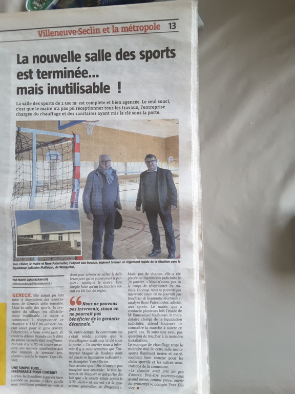 Ce vendredi 23 Février, le maire Yves Olivier et son adjoint aux sports , René Paternoster , nous informent sur le décalage de la mise à disposition de la salle ...