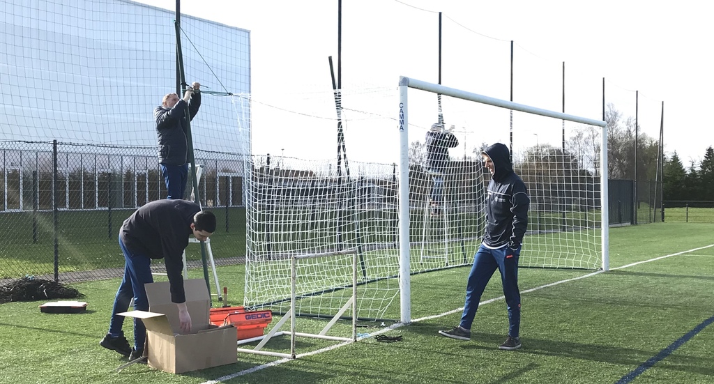 Mettant à profit le ciel bleu de ce 25 janvier, Le President et Gilles, accompagnés des frères Danjou , Théophile et Simeon ont installé de nouveaux filets sur les buts du terrain synthétique.