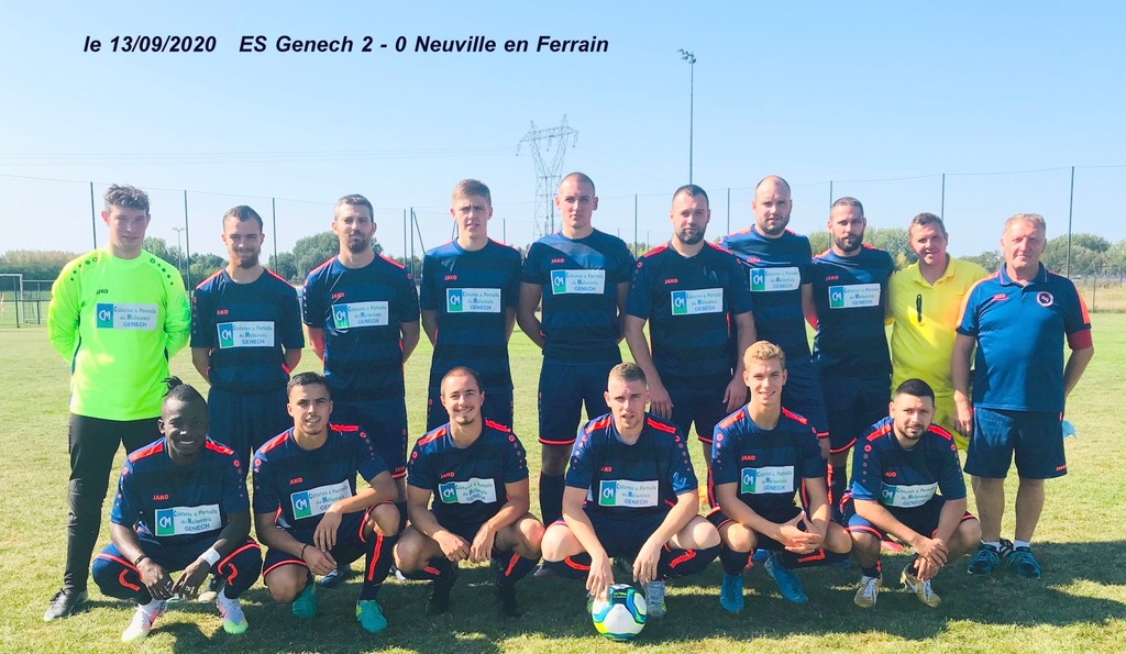 Face à une équipe de Neuville en Ferrain venue pour prendre des points sur notre pelouse , les Genéchois ont réussi à maîtriser le jeu . Les duels gagnés et une bonne possession du ballon ont permis à notre équipe d'ouvrir le score par David d'une superbe frappe . La passe de Dylan vers David était lumineuse....