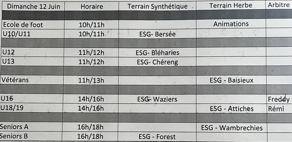 Programme Dimanche 12 Juin
