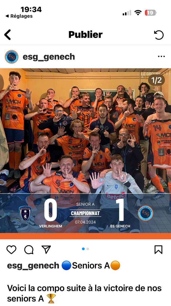 Belle victoire de l’équipe A à Verlinghem