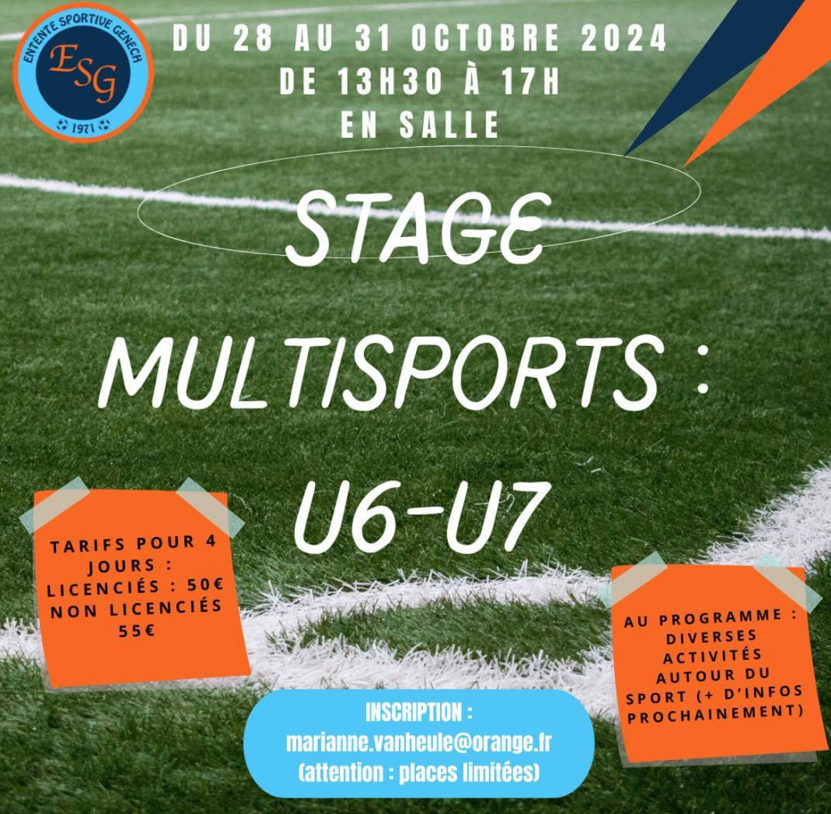 Stage multisport du 28 au 31 octobre 2024 de 13h30 à 17h00 pour nos U6-U7