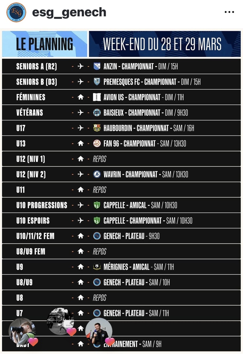 Planning des 28 et 29 mars